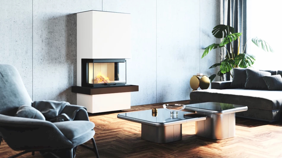 Der neocube P24 wird in seiner Geradlinigkeit von einem umlaufenden Sims mit Überstand unterbrochen. In Kombination mit dem Panoramafenster entsteht ein Ofen, der mit seiner markanten Form beeindruckt.