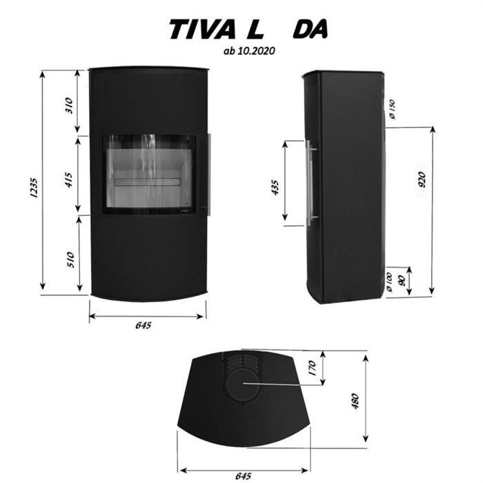Skanderborg Kaminofen Tiva L Da Stahl schwarz Abgang hinten
