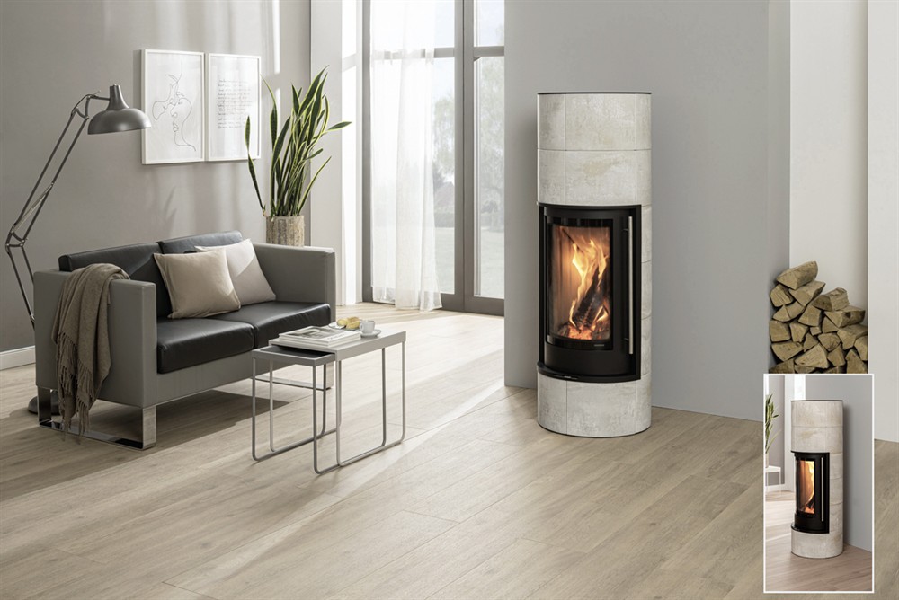 Skanderborg Kaminofen Pila Compact Kachel Betonic Abgang oben