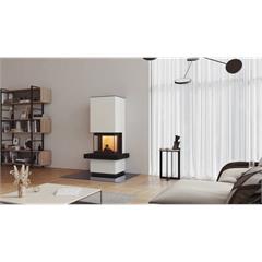 Der neocube P14 wird in seiner schlichten Form von einem umlaufenden Sims mit Überstand ergänzt. In Kombination mit dem Panoramafenster entsteht eine großzügige Bühne für das Feuerspiel des Kaminofens.