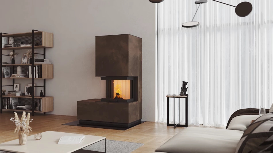 Der neocube P33 in seiner L-Form öffnet den Raum mit seiner nach links ausgerichteten Bank und dem frei einsehbaren Panoramafenster. Mit seiner großzügigen Form entfaltet er besonders in größeren Räumen seine imposante Wirkung.