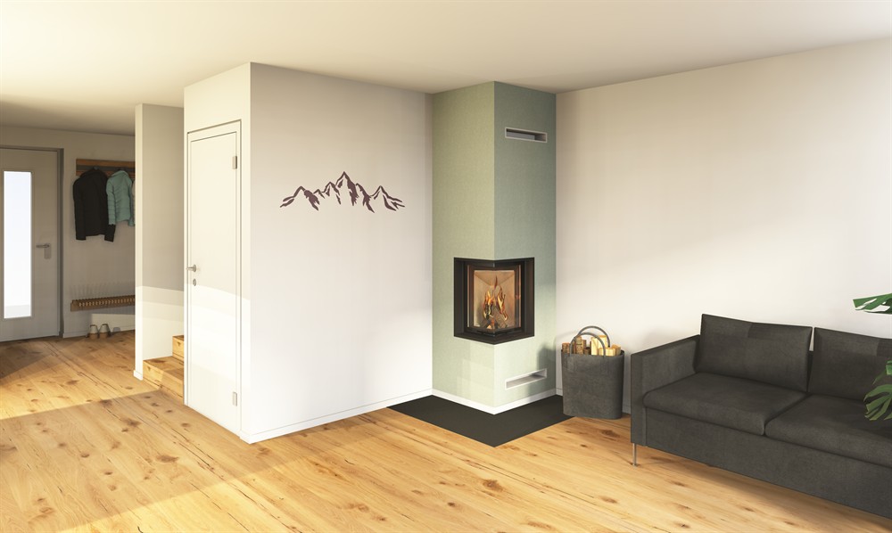 Brennzelle, Einbaurahmen 4 Seitig Massiv, Verbrennungsluftanschlusstutzen, Kaminklappe, Kaminklappengriff, Putzträgerplatten für Mantel,