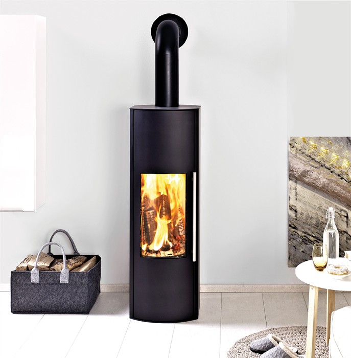 Skanderborg Kaminofen BELLA inkl. Speicherkern VULKANO Stahl schwarz Abgang oben