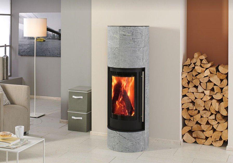 Skanderborg Kaminofen BELLA inkl. Speicherkern VULKANO Stahl schwarz Abgang hinten