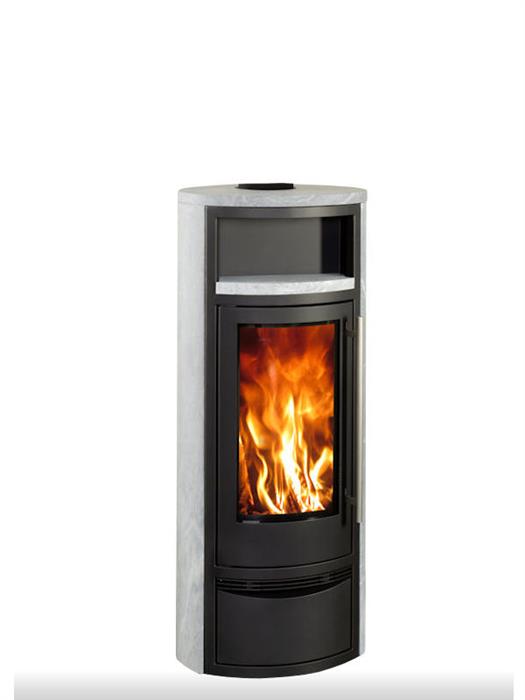 Skanderborg Kaminofen Thea Stahl Speckstein Abgang oben