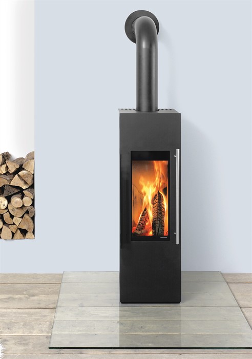 Skanderborg Kaminofen Ferro Da Stahl schwarz Abgang oben