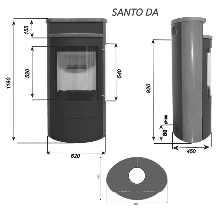 Skanderborg Kaminofen Santo Da Stahl schwarz Abgang oben