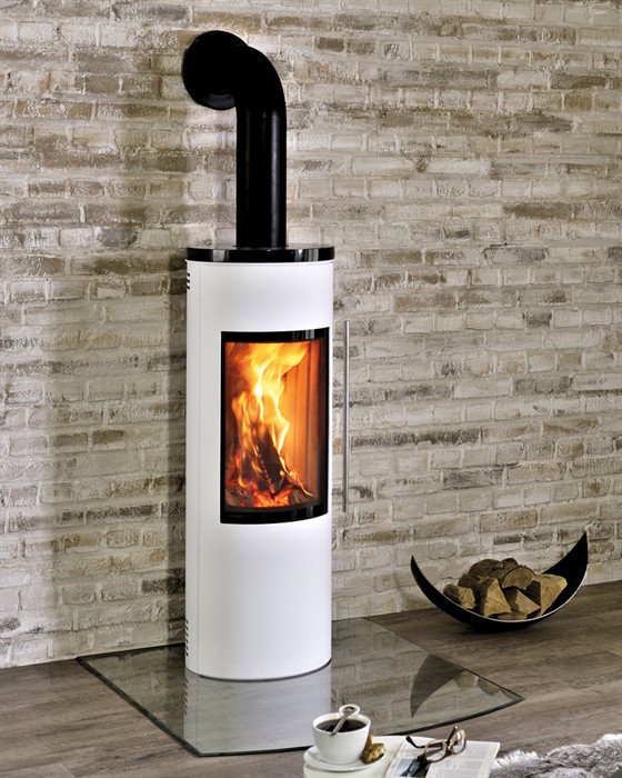 Skanderborg Kaminofen Veron Da Stahl weiss Abgang hinten