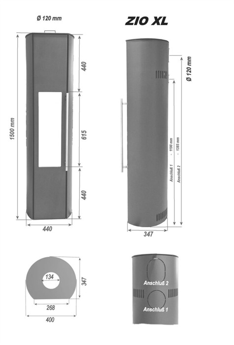 Skanderborg Kaminofen Zio XL Da Stahl schwarz Abgang oben