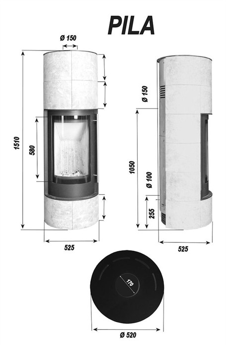 Skanderborg Kaminofen Pila Kachel Mekalit Abgang oben