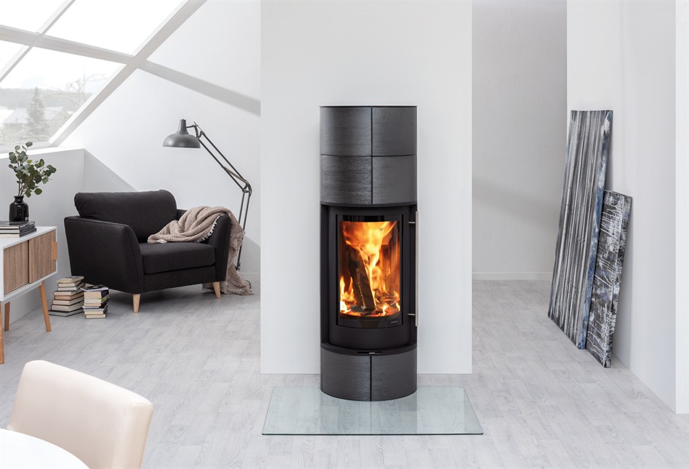 Skanderborg Kaminofen Pila Kachel Mekalit Abgang hinten