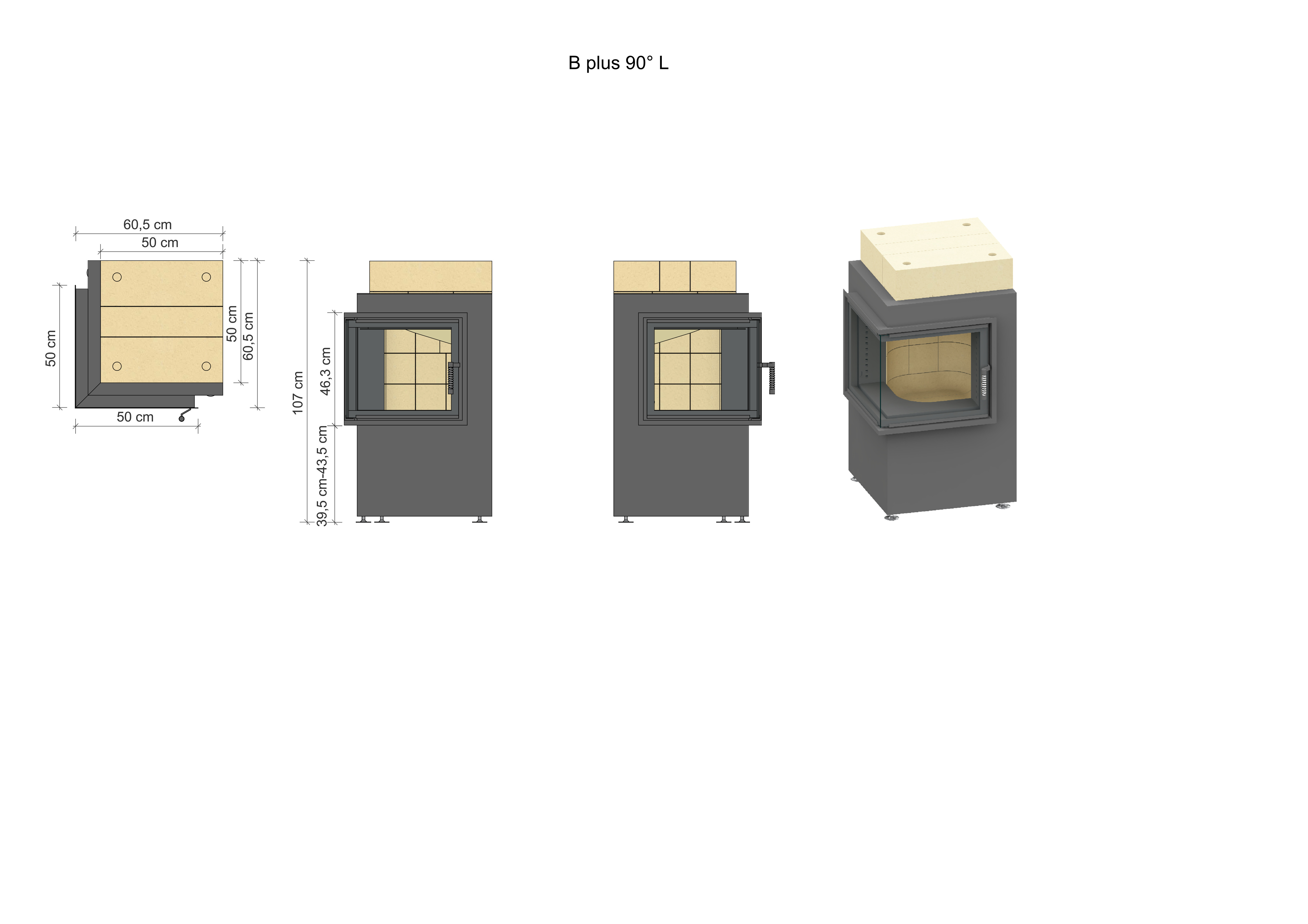 BRULA Komplett-Feuerraum, Typ B plus 90° Ecke L - 500 x 500 x 1070 mm