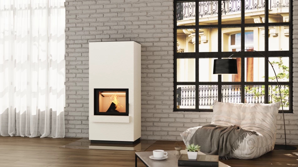 Der neocube F14 wird in seiner kubisch geschlossenen Form durch einen überstehenden Sims unter dem Sichtfenster durchbrochen. Es entsteht ein Ofen, der dank seiner Form in jeden Raum integriert werden kann.