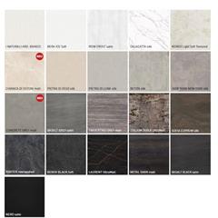 Sockel- bzw. Bankelement, als auch die Schürze in vielen weiteren Oberflächen ausgeführt werden.