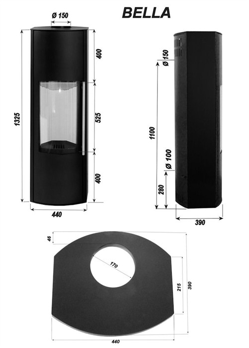 Skanderborg Kaminofen BELLA inkl. Speicherkern VULKANO Stahl schwarz Abgang oben