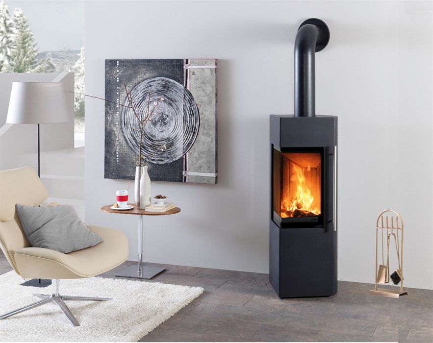 Skanderborg Kaminofen Cali Da Stahl schwarz Abgang oben